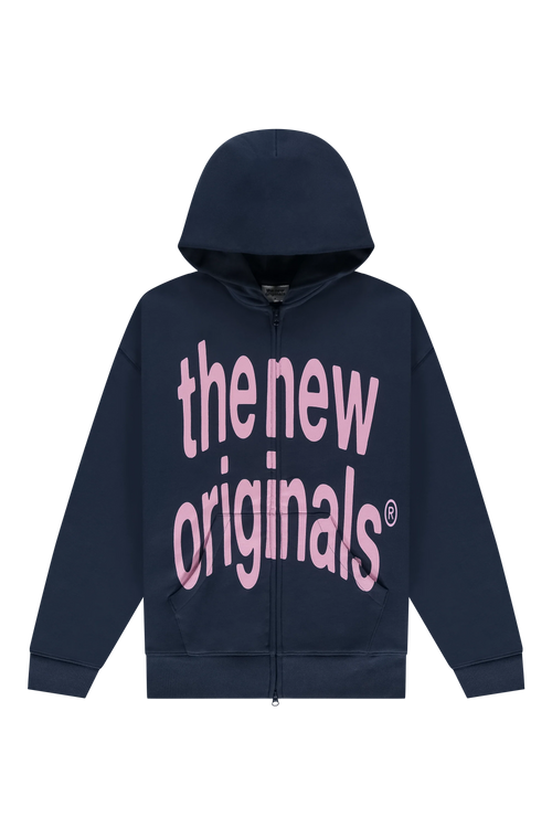 Big Logo Zip Up Hoodie Navy Blue / Pink