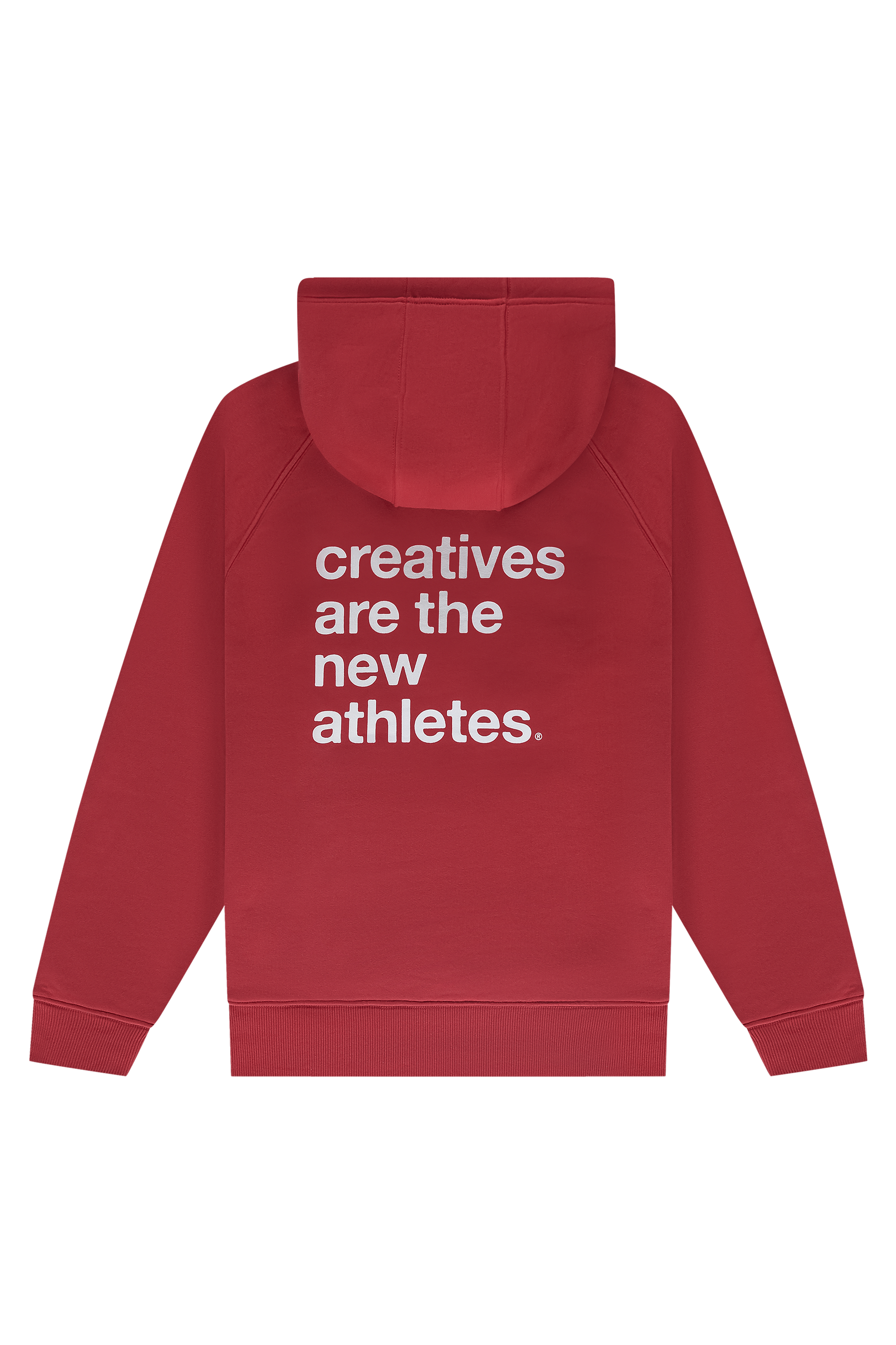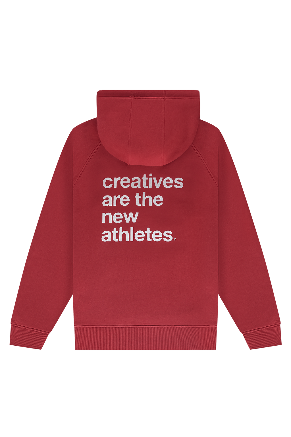 The Catna Hoodie in Red features our Emblem logo embroidered on the left chest and our bold Catna phrase “creatives are the new athletes” printed across the back.