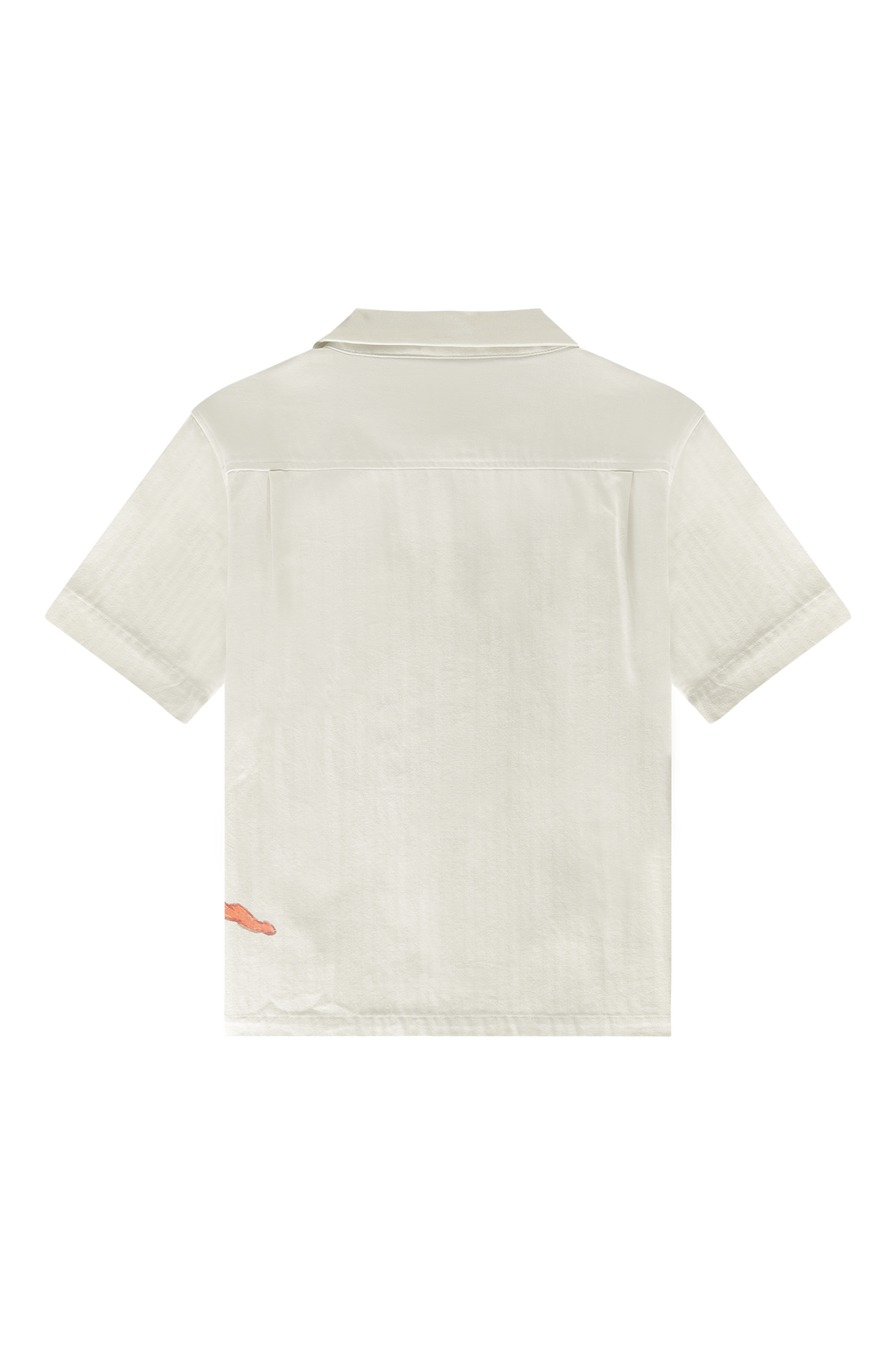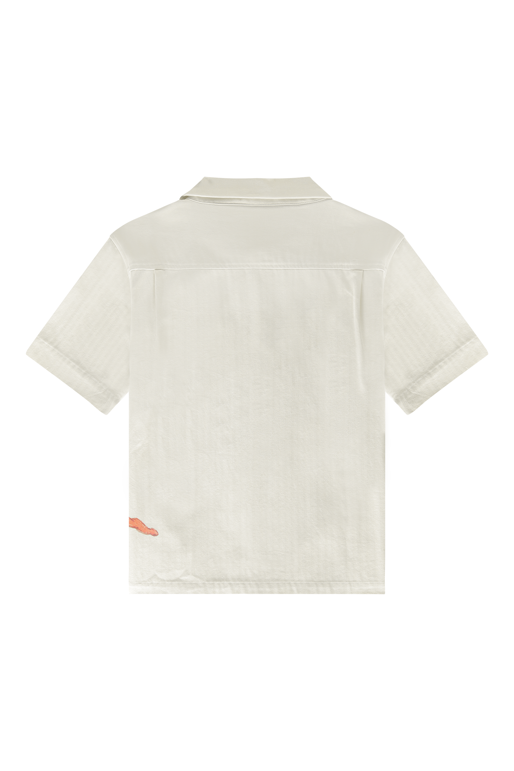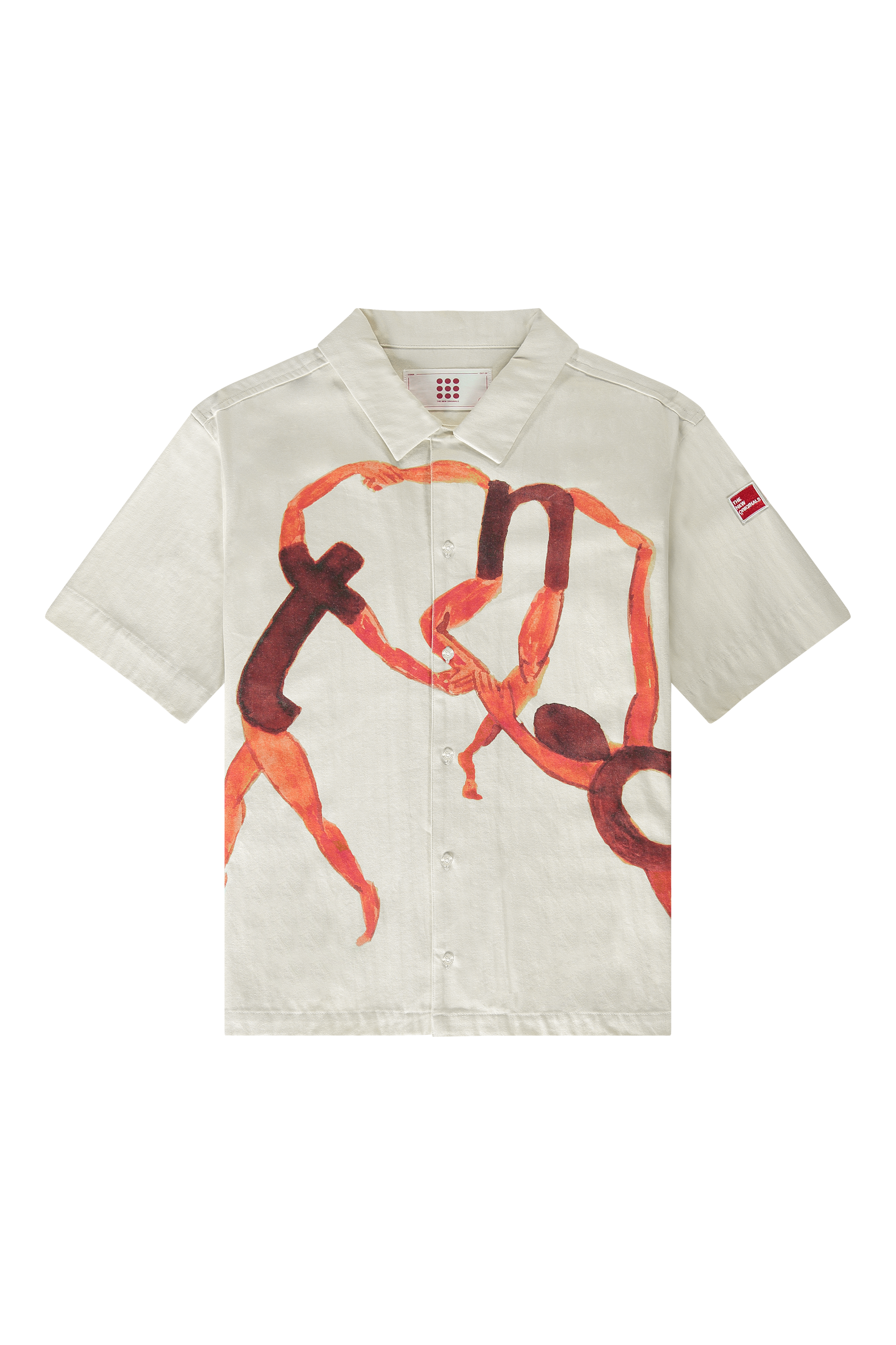 Introducing the La Danse Shirt in White Alyssum - a button-up shirt featuring our iconic 'The New Originals' red patch logo on the left arm sleeve. Complete with a statement La Danse graphic with the TNO logo incorporated into it